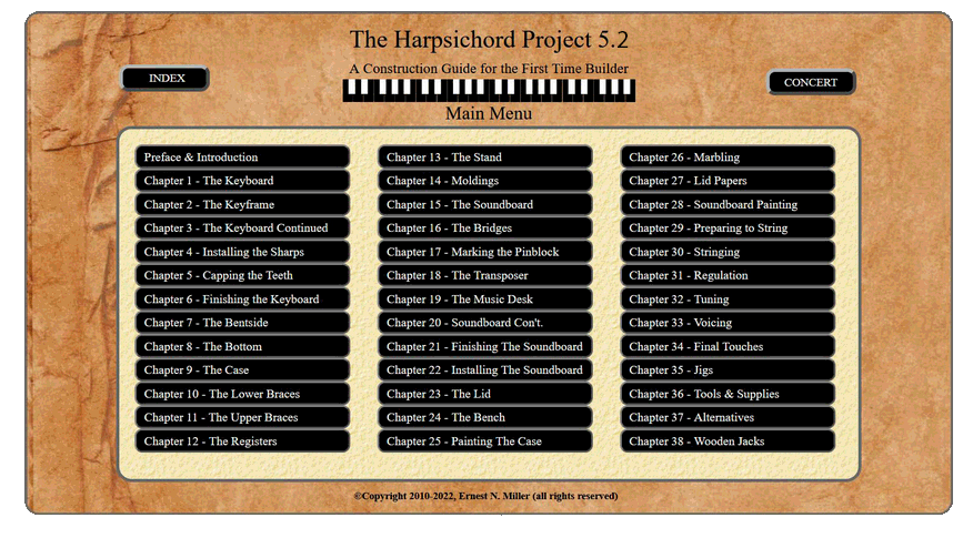 In a book of this size (over 1100 pages), ease of navigation is a necessity. The first level of navigation is the Main Menu. From this menu (shown below) you can